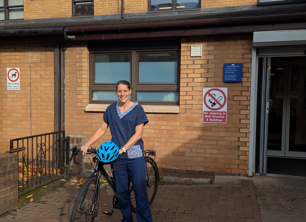 She lives three miles from the health centre where she’s based and, for the last two years, has cycled both to work and for her appointments: “the bonus is that Govanhill is all flat so it’s so easy to get around on my bike when I’m visiting my families. It’s downhill all the way from home (so going home can be a bit harder!) but on a nice day, it’s great.